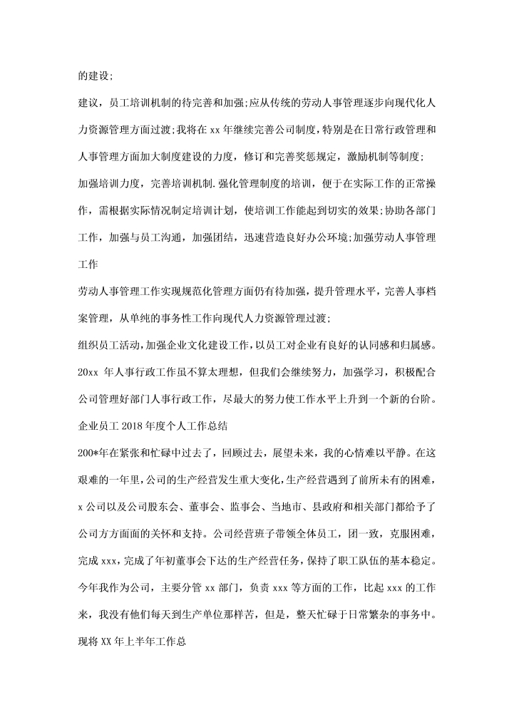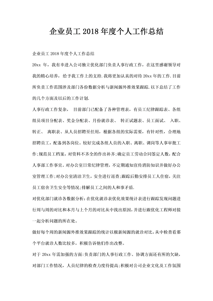 word模板-企业员工年度个人工作总结