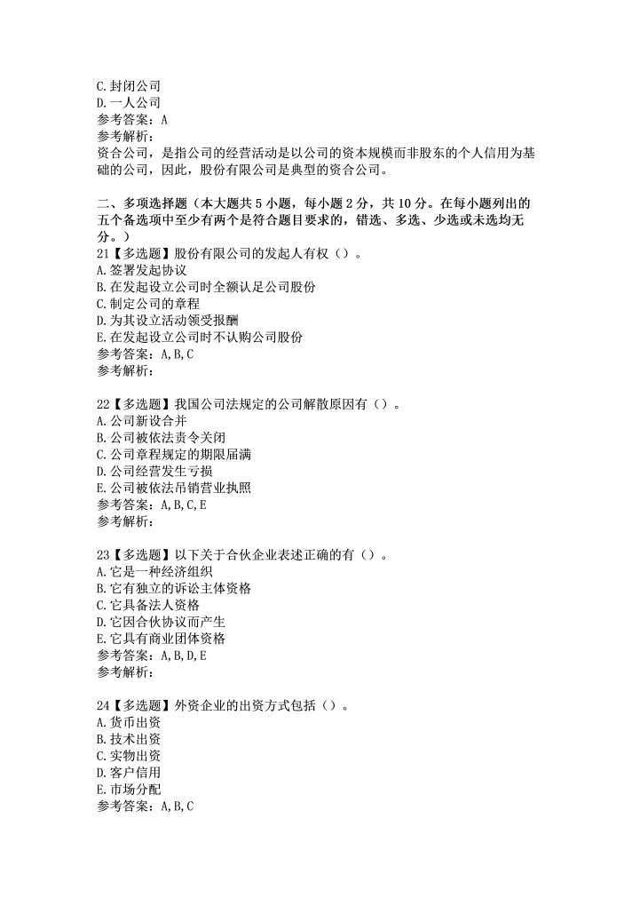 word模板-自考《企业与公司法学》模拟试卷(二)