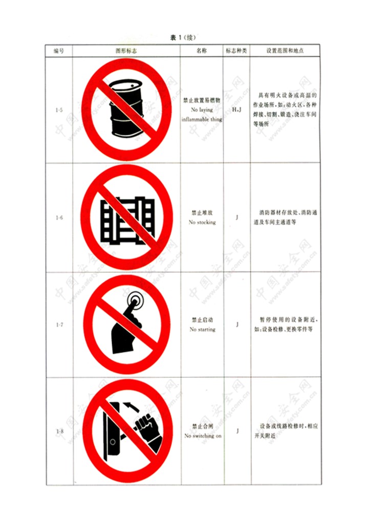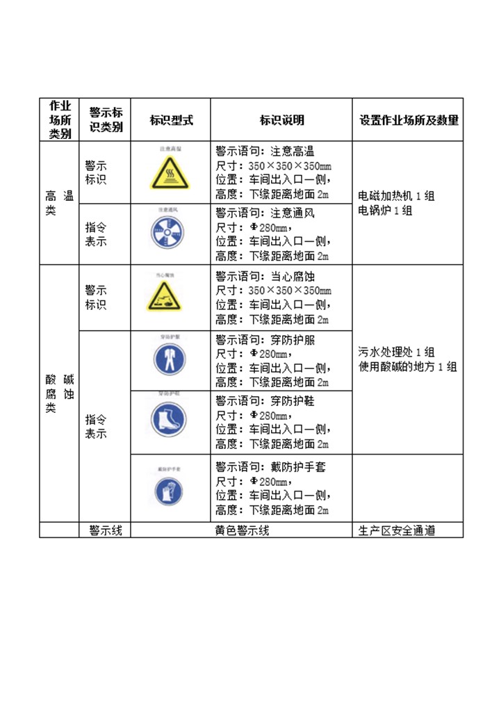 word模板-企业安全警示标识设置一览表