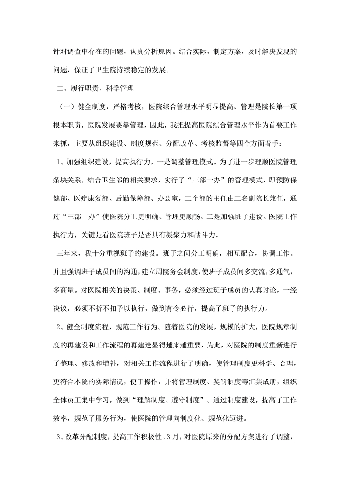 word模板-医院院长述职述廉汇报材料