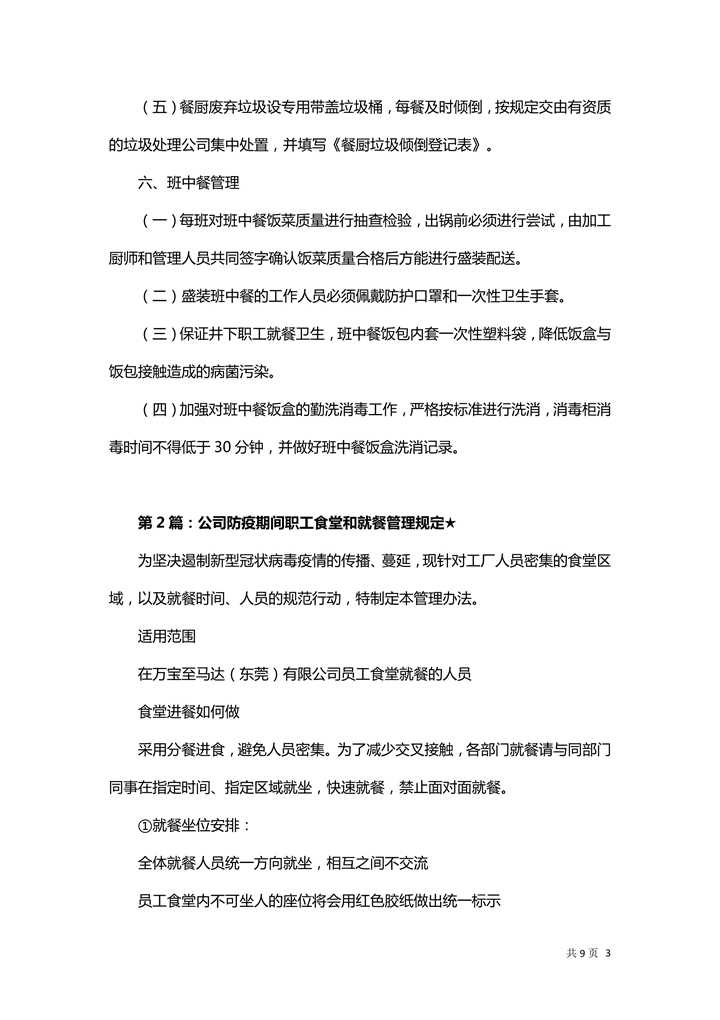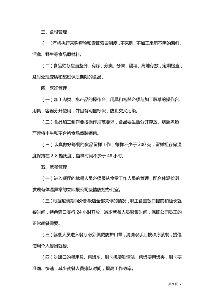 word模板-企业复工食堂就餐管理方案