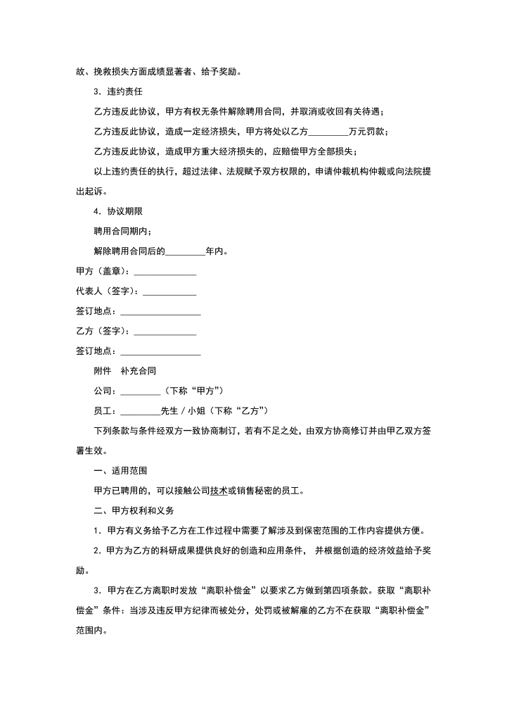 word模板-保密协议高管协议书