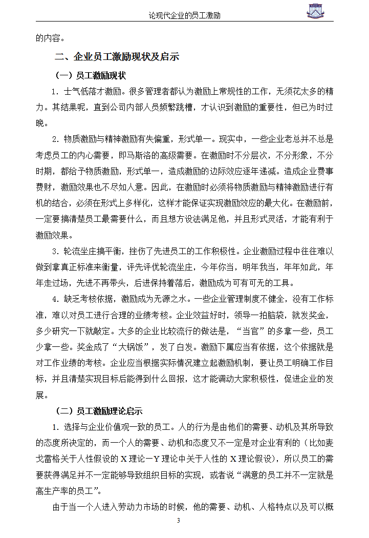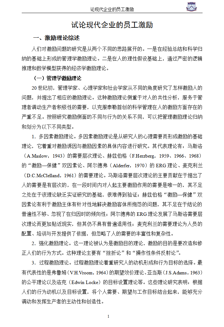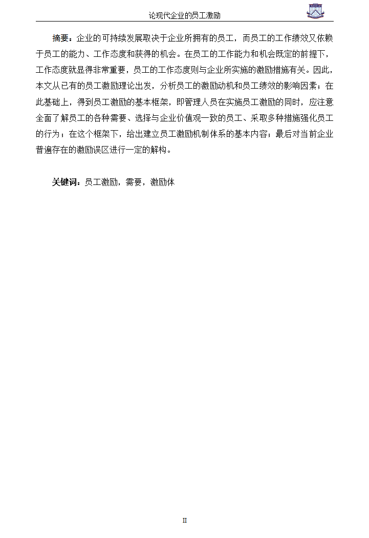 word模板-试论现代企业的员工激励