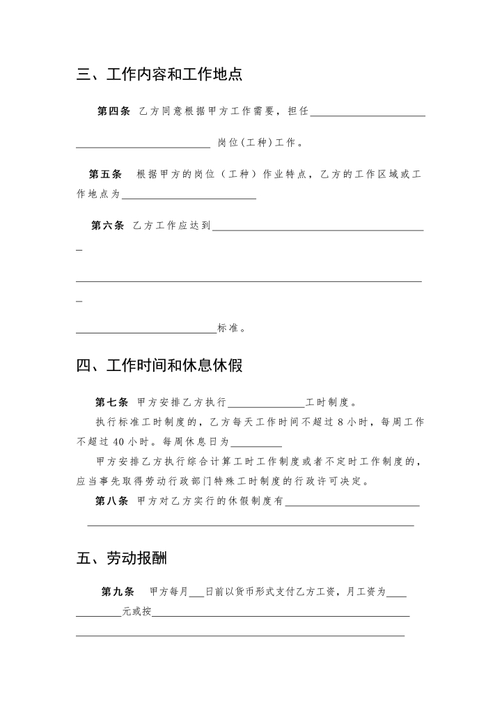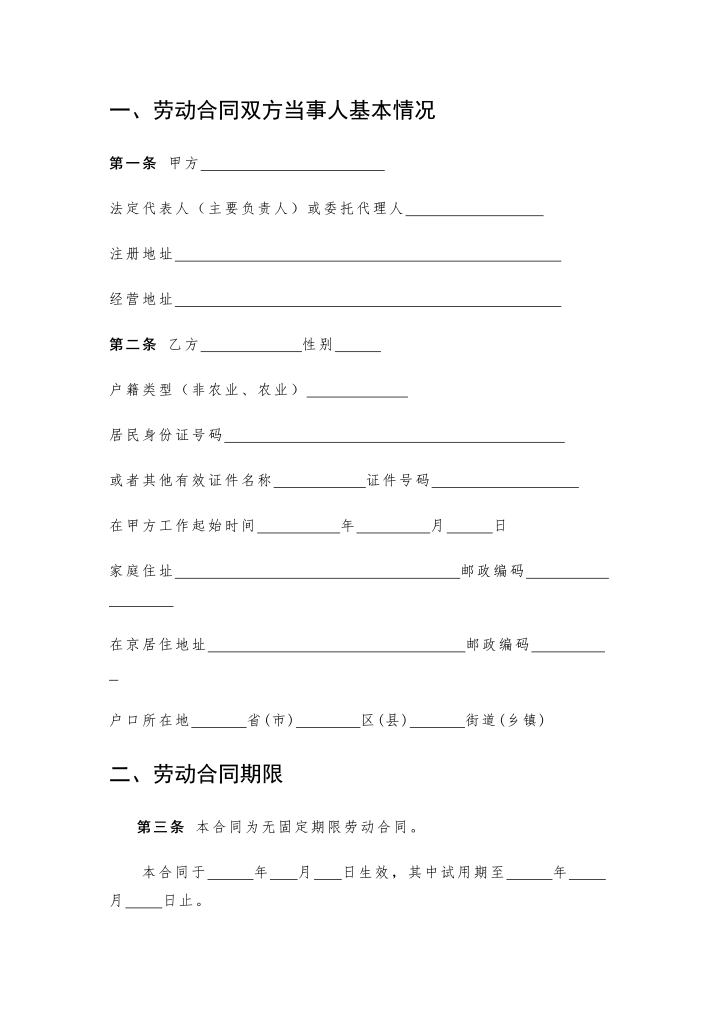 word模板-无固定期限劳动合同书