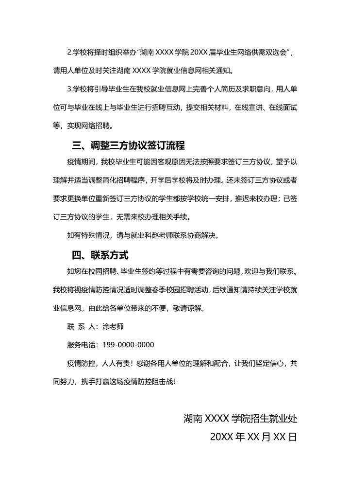 word模板-疫情期间院校致用人单位的一封信