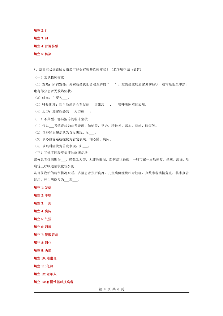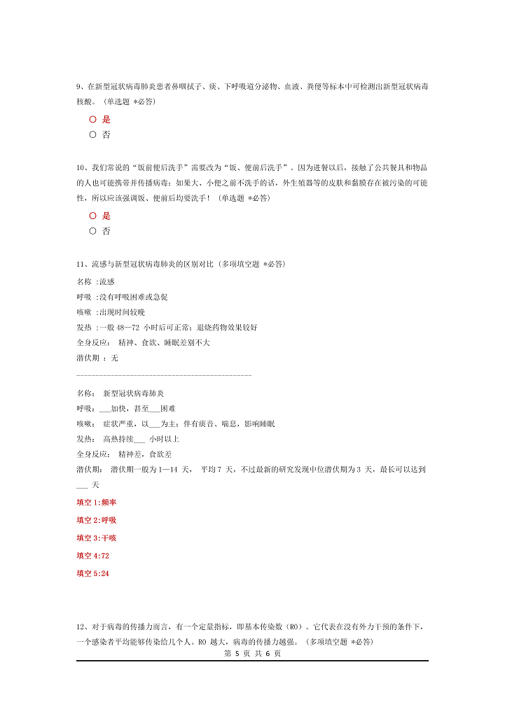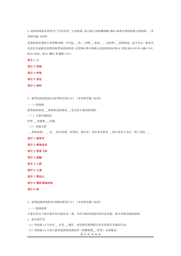 word模板-新型冠状病毒肺炎企业复工考试题