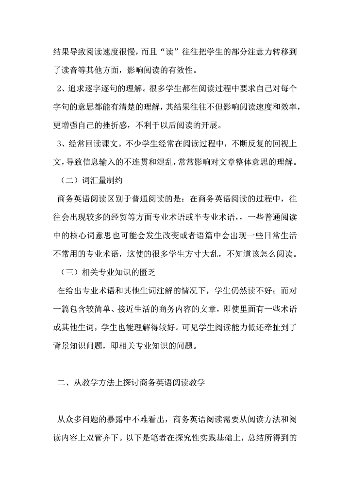 word模板-商务英语阅读教学浅论