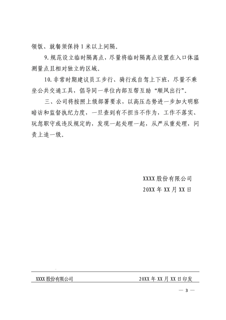word模板-公司关于进一步加强疫情防控的通