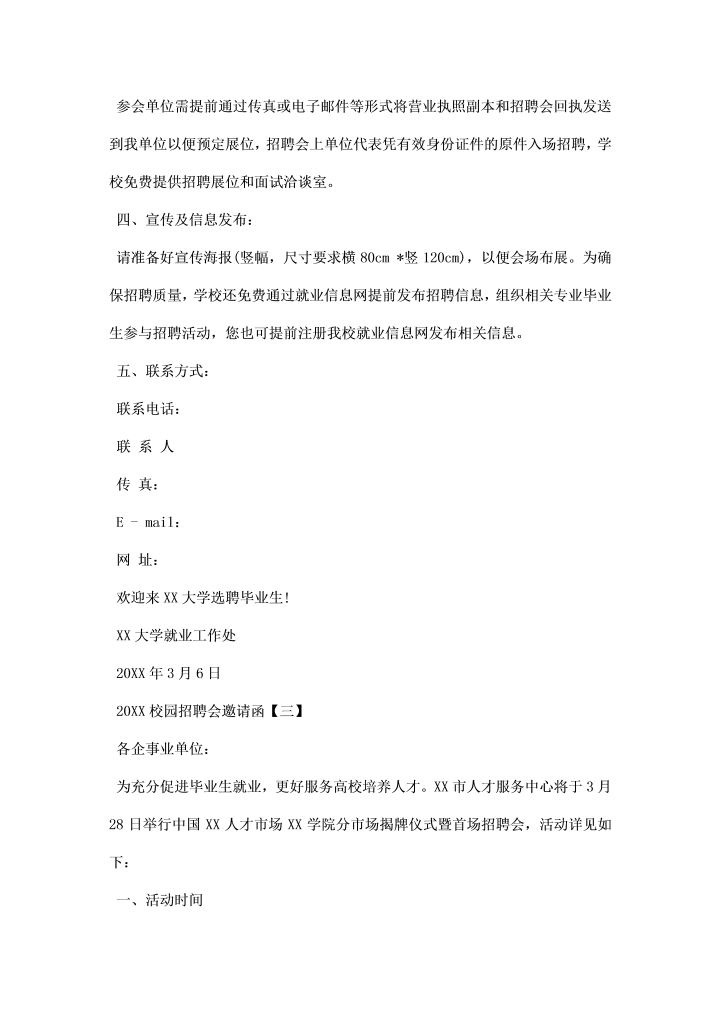 word模板-校园招聘会邀请函