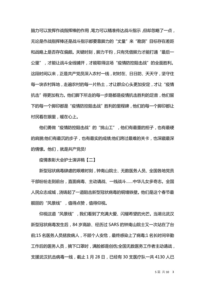 word模板-疫情表彰大会护士优秀演讲稿