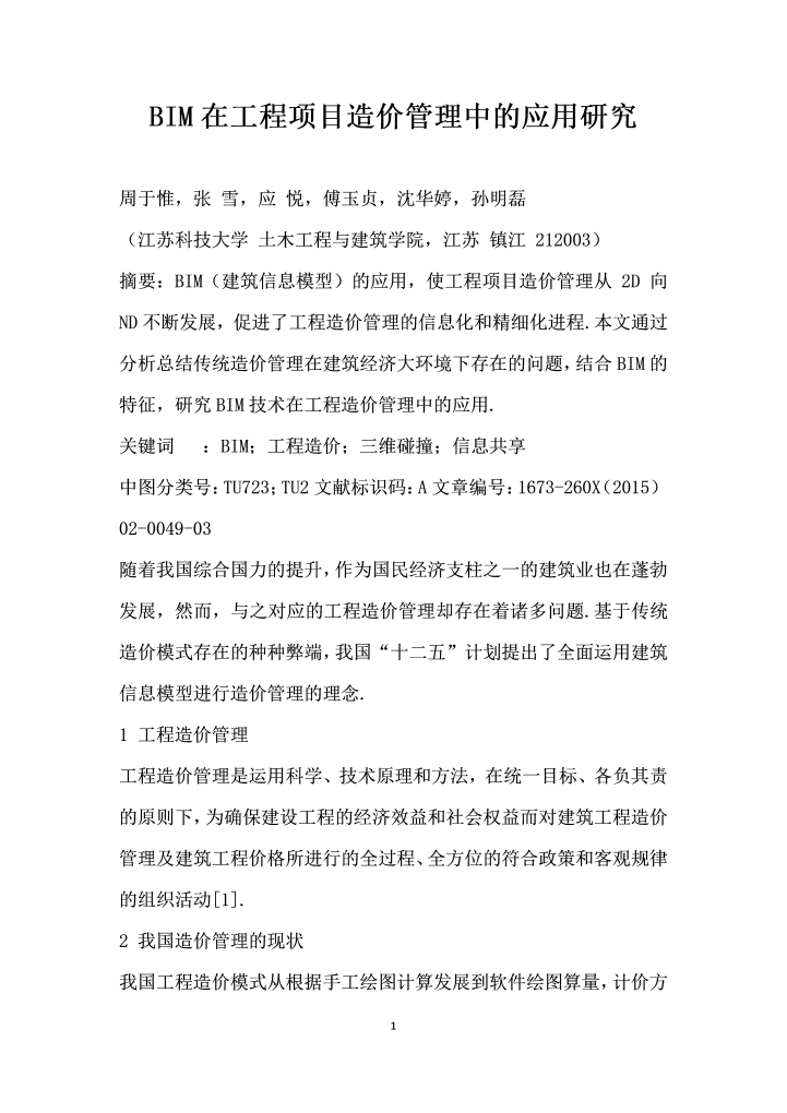 word模板-BIM在工程项目造价管理中的应用研究