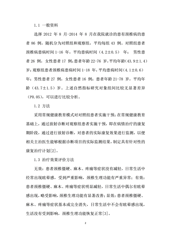 word模板-放射诊断在颈椎病患者康复中的应用价值