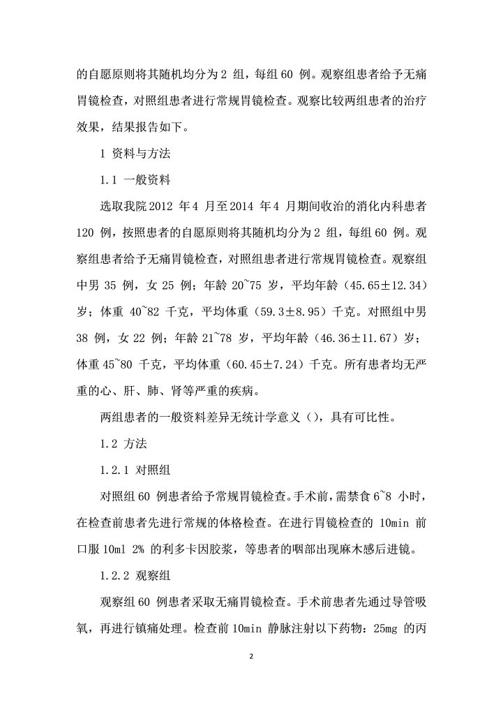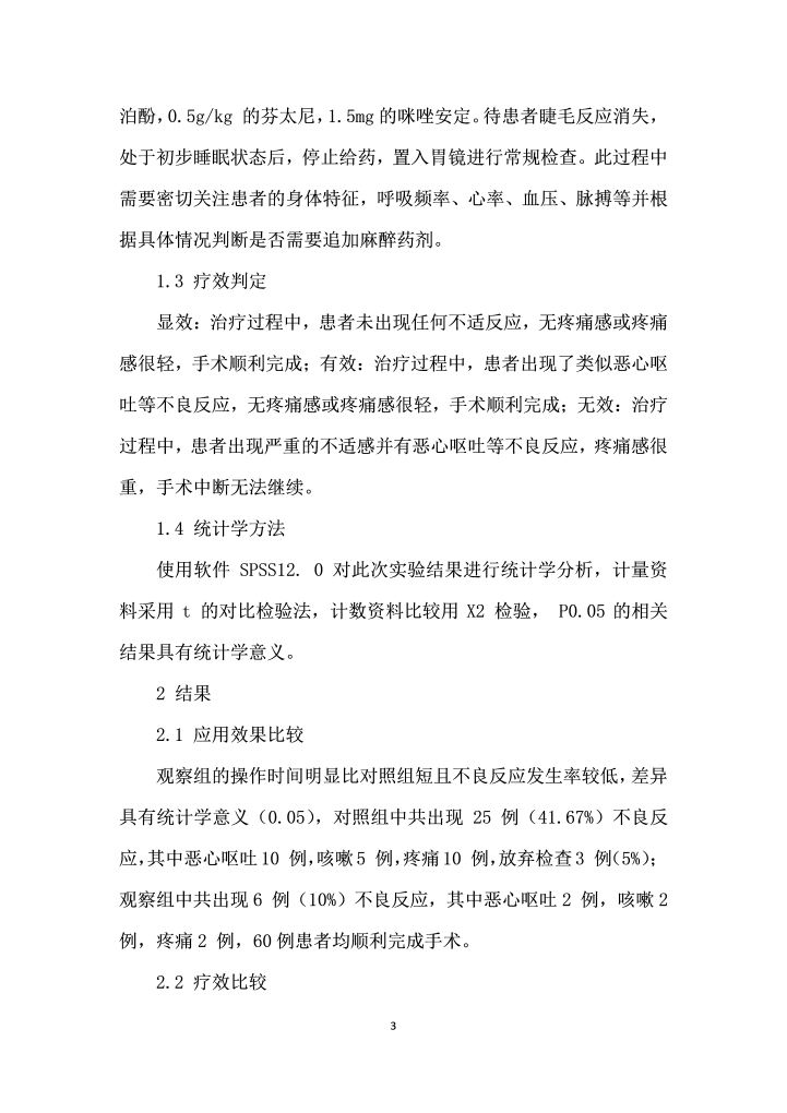 word模板-探讨消化内科无痛胃镜临床的应用疗效