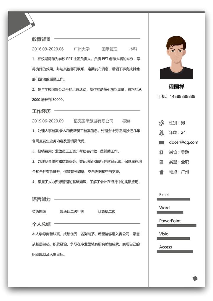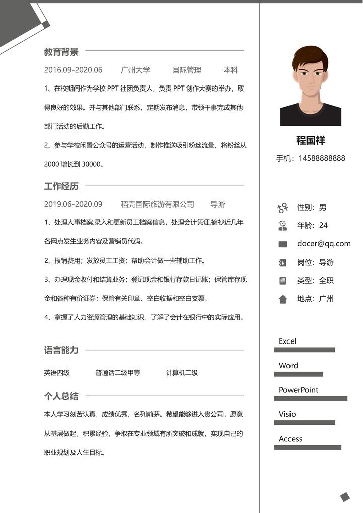 word模板-导游春招秋招简历