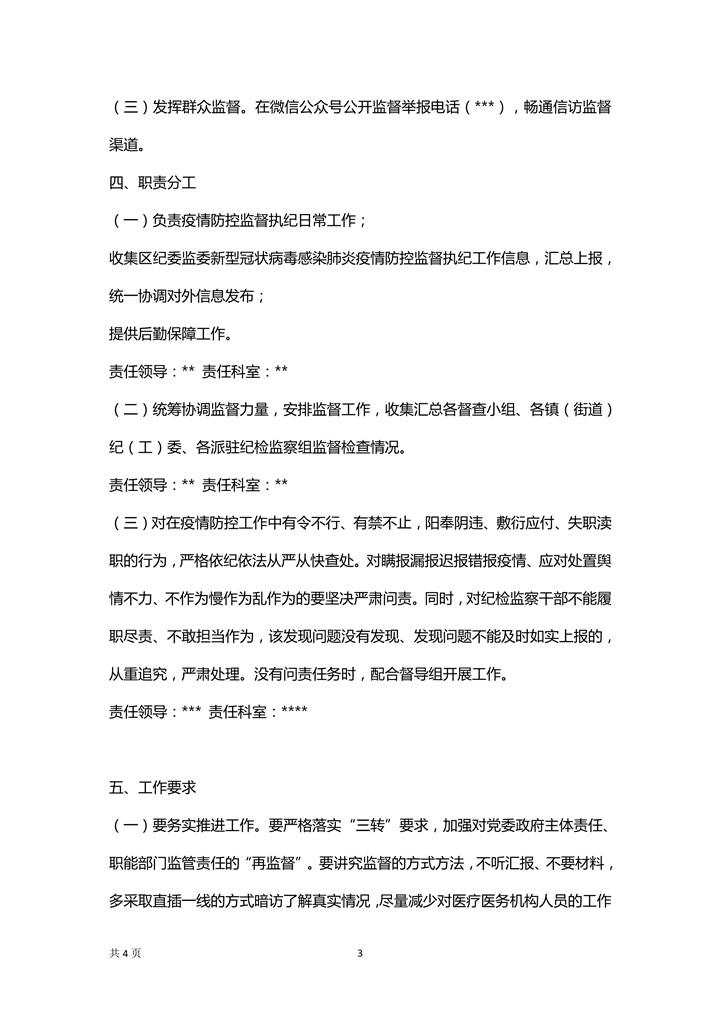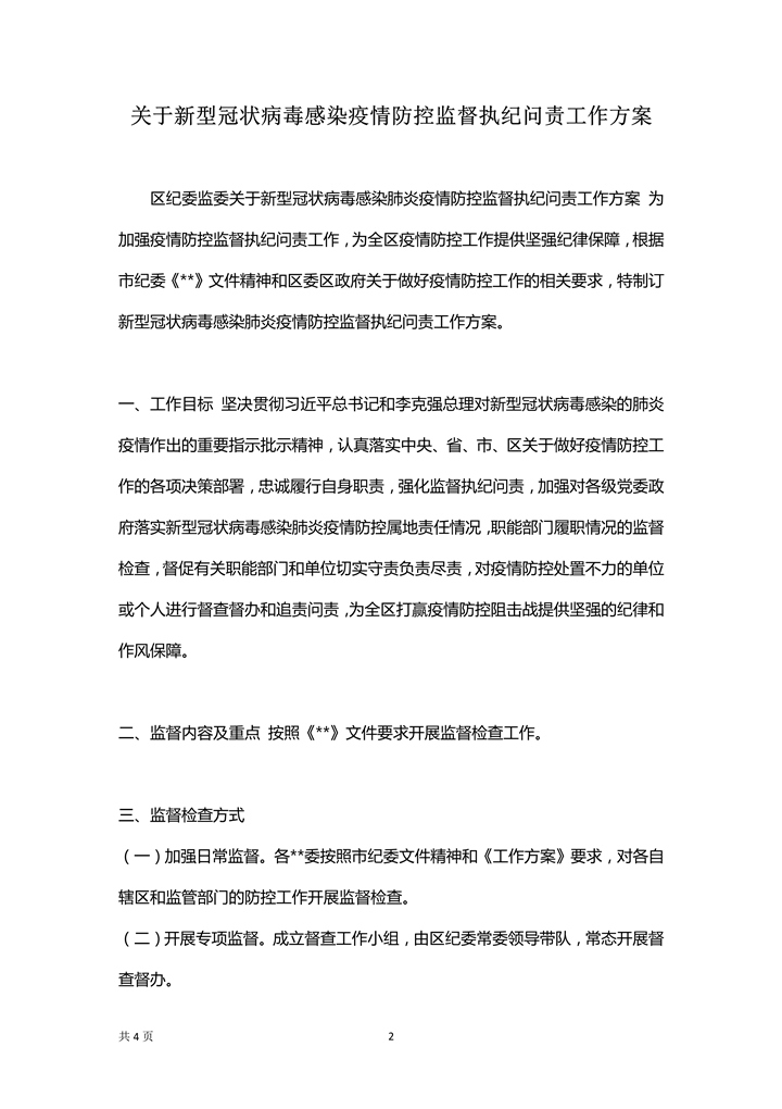 word模板-疫情防控监督执纪问责工作方案