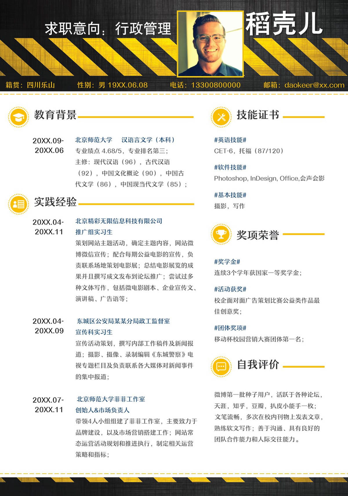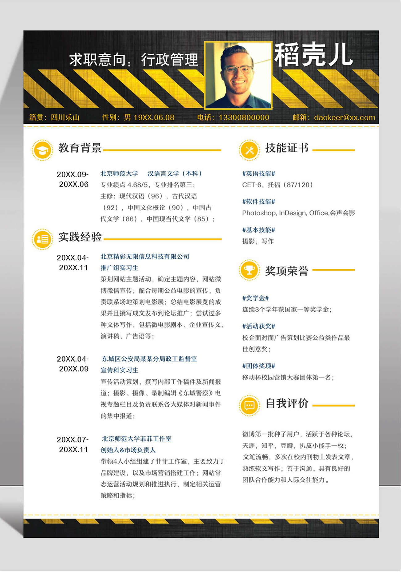 word模板-黑金商务风行政求职简历