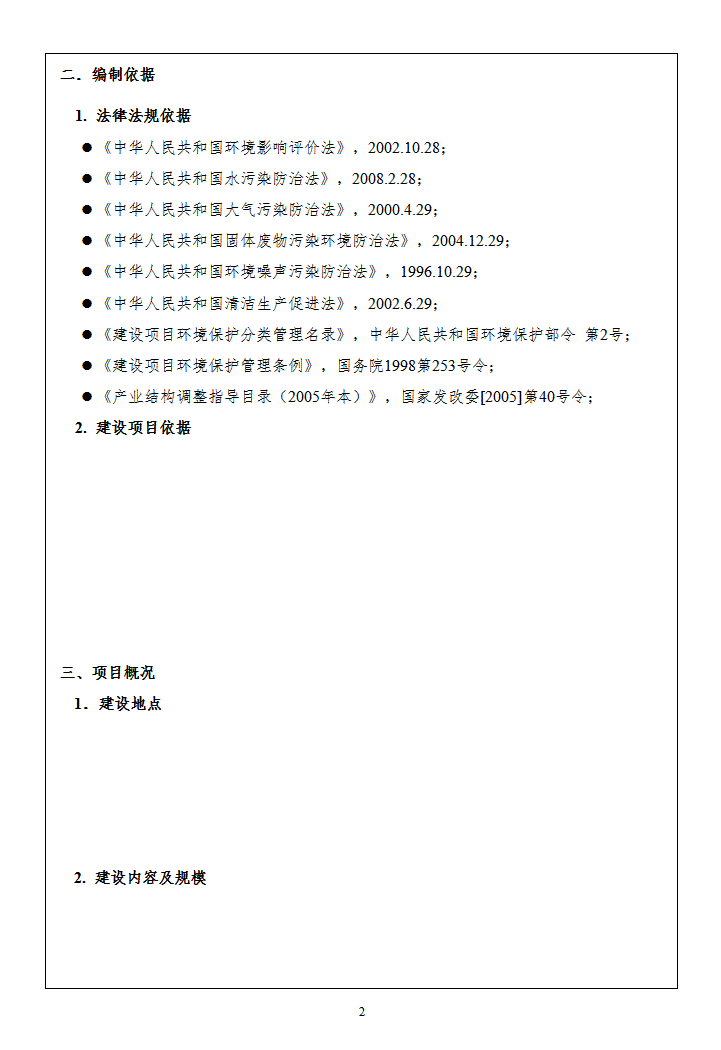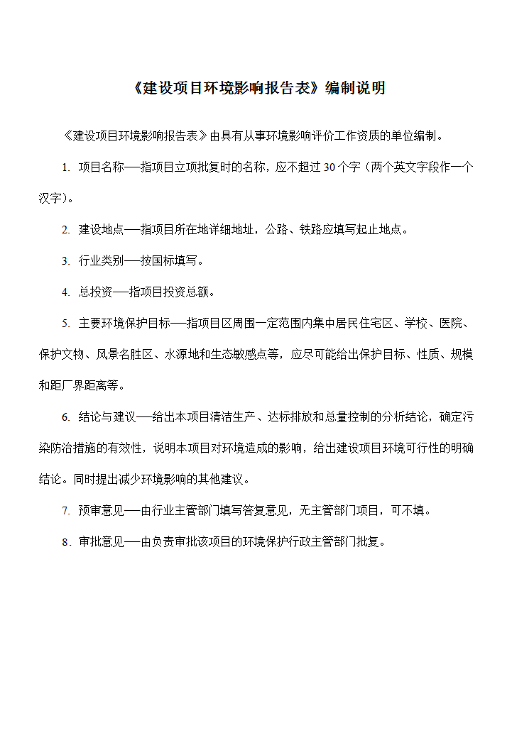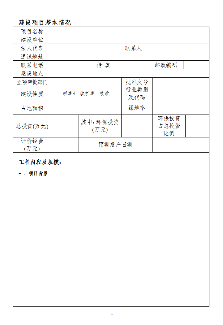 word模板-环评报告表格式