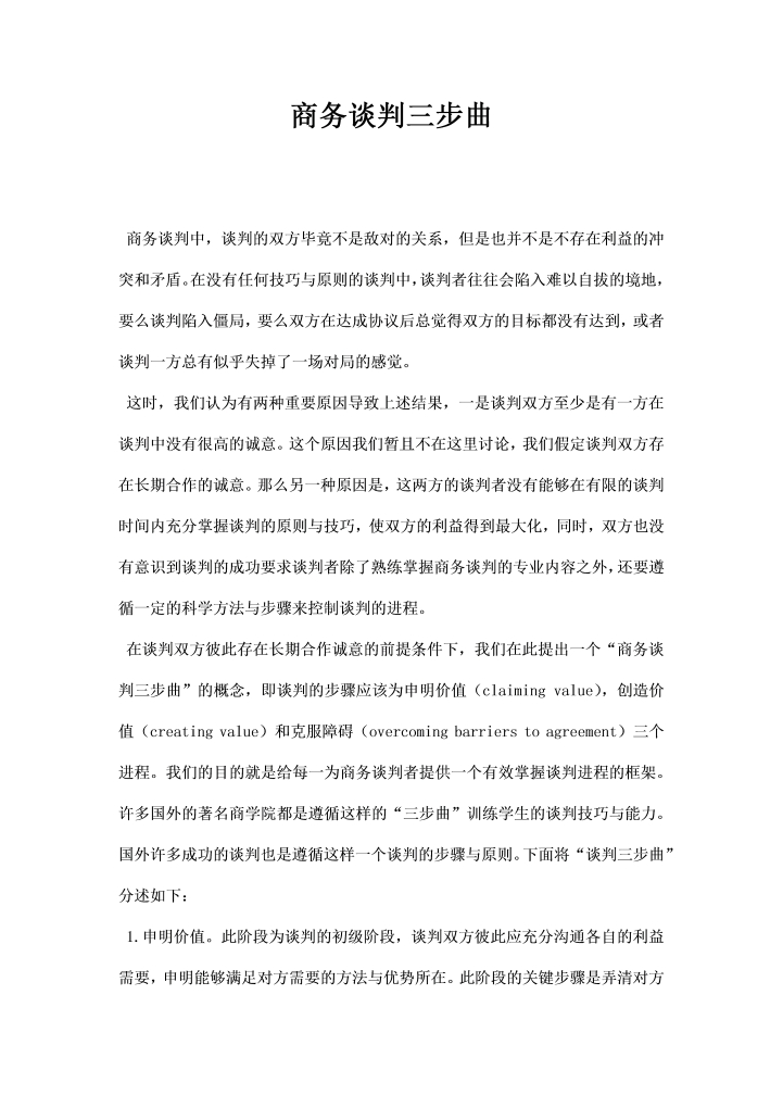 word模板-最新商务谈判三步曲模板