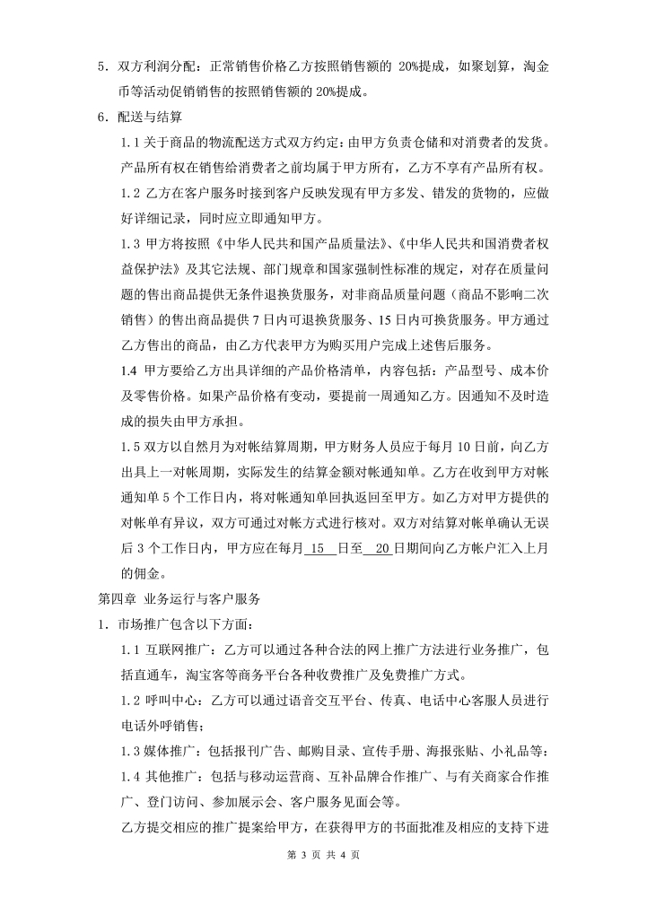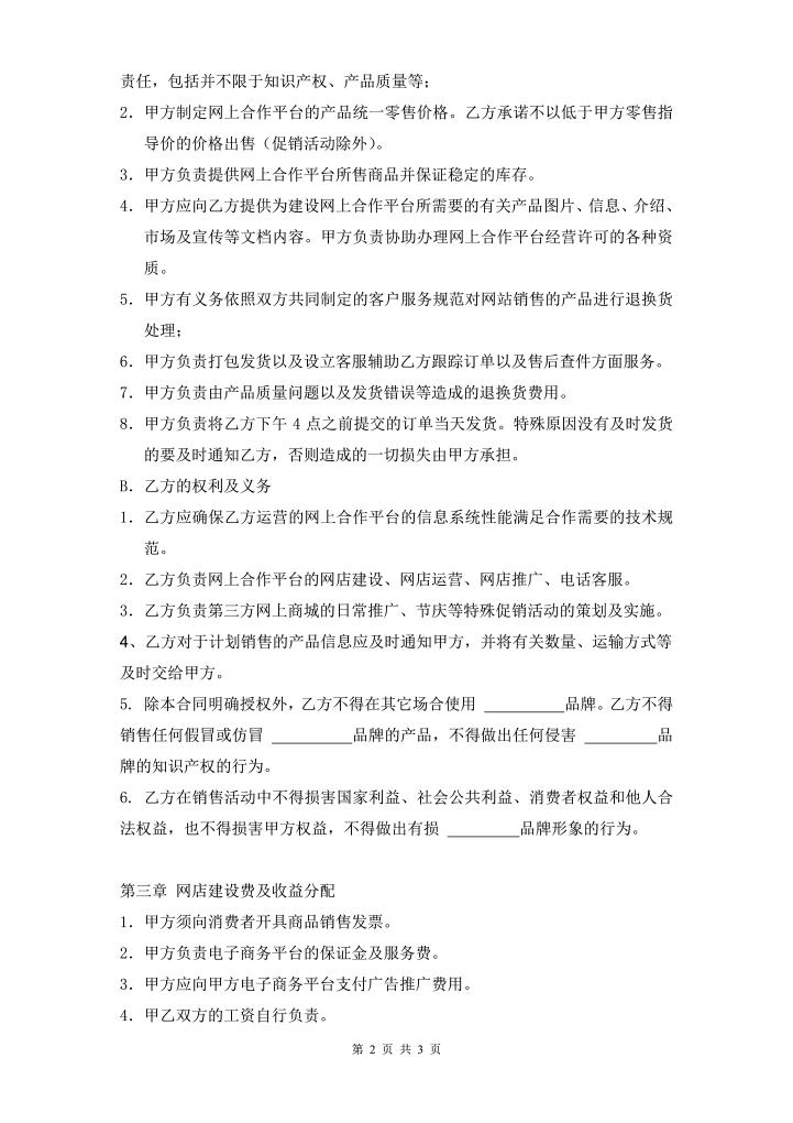 word模板-电子商务运营合作协议合同