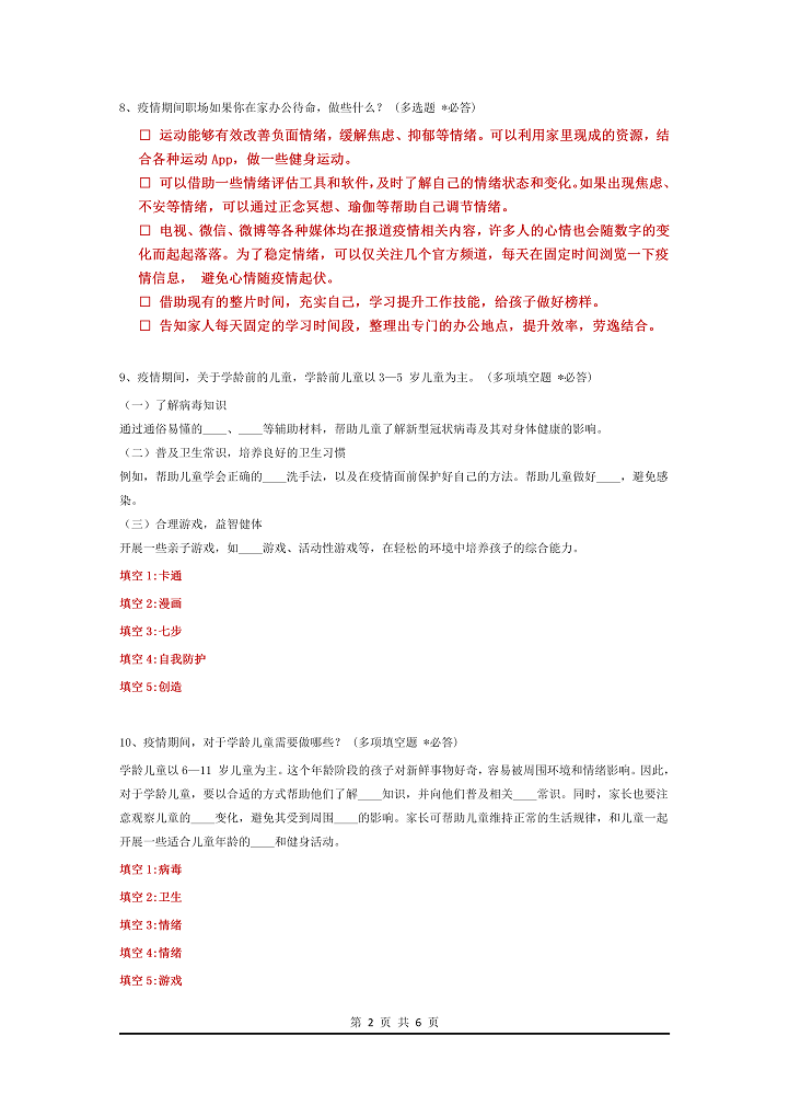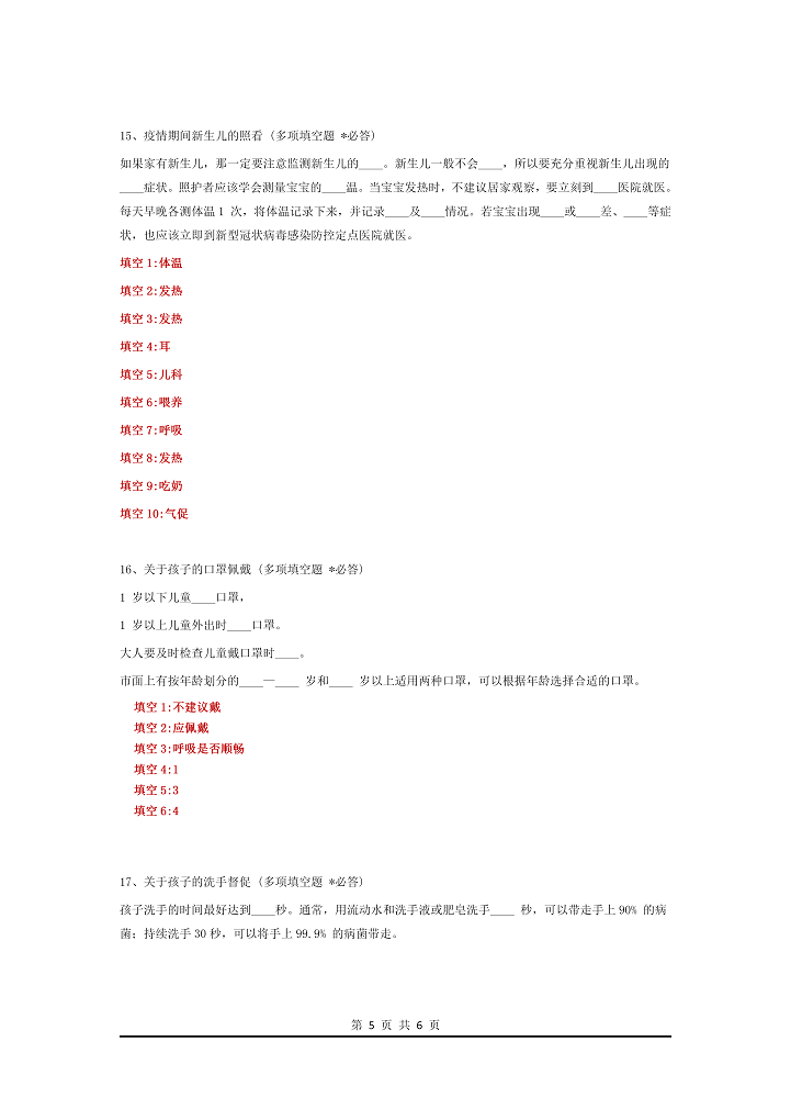 word模板-新冠病毒企业复工考试题