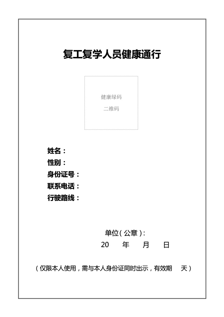 word模板-复工复学人员健康通行信息