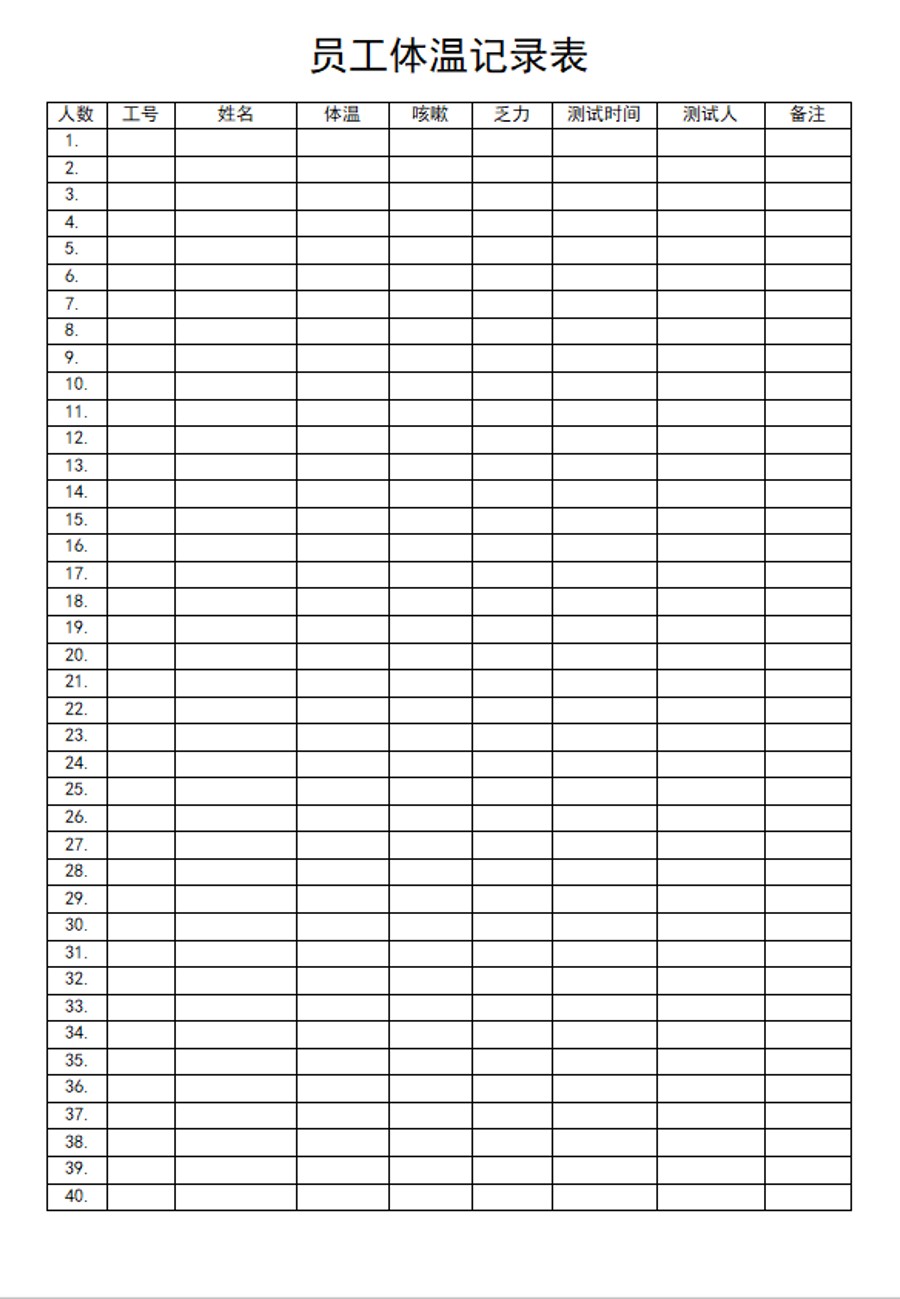 word模板-员工体温记录表
