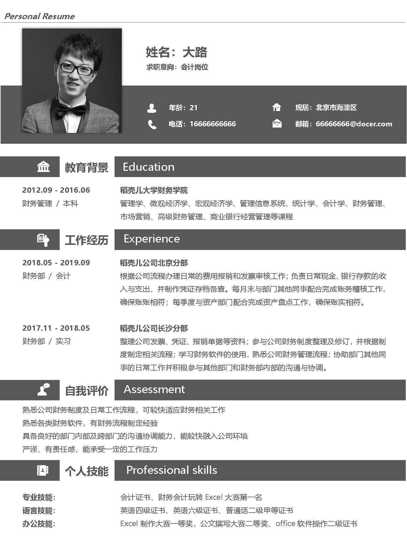 word模板-简约黑色会计岗位个人简历