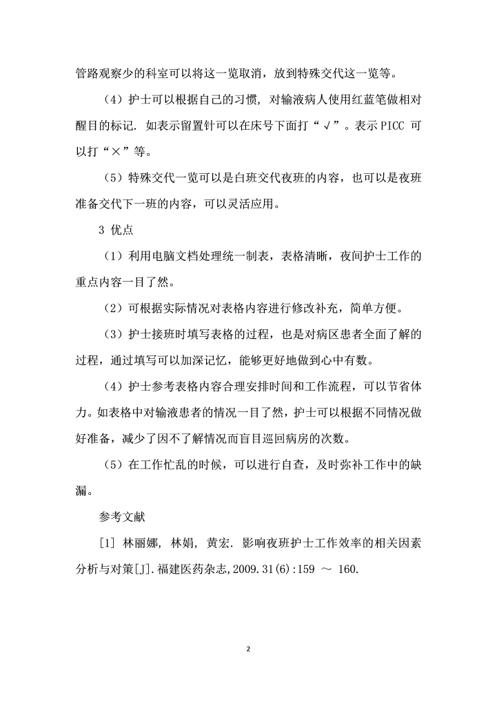 word模板-夜间护士交接班表的设计和应用
