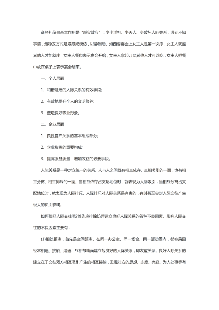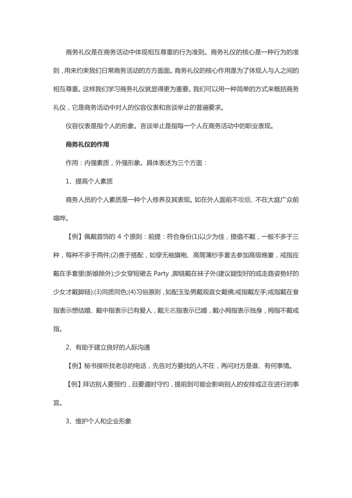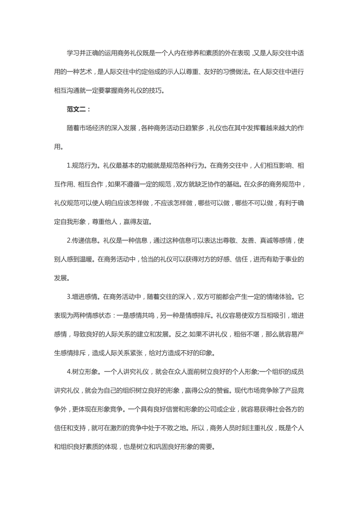 word模板-商务礼仪重要性