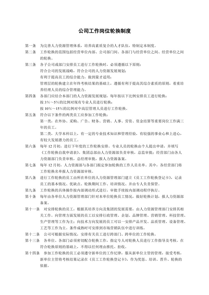word模板-企业之公司工作岗位轮换制度