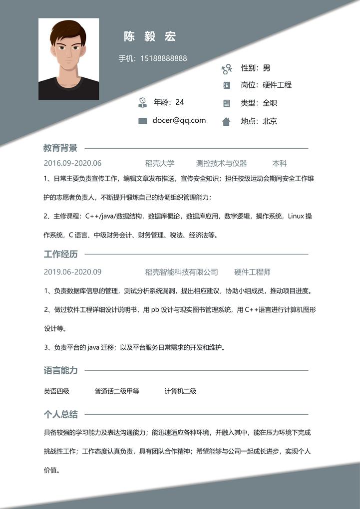 word模板-硬件工程师春招秋招免费简历