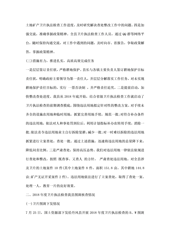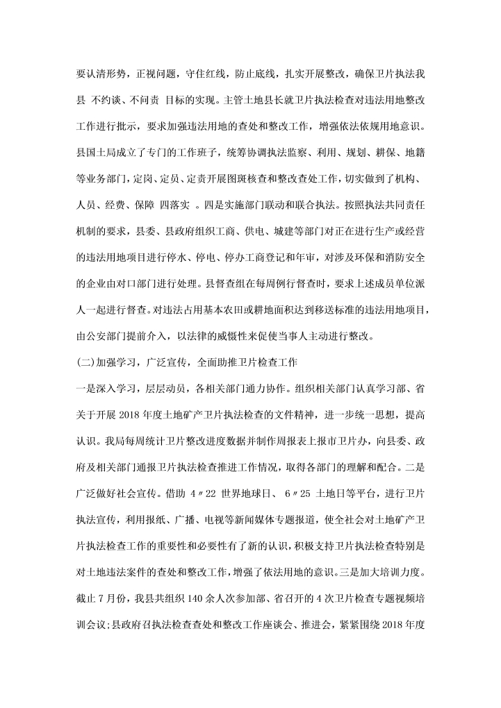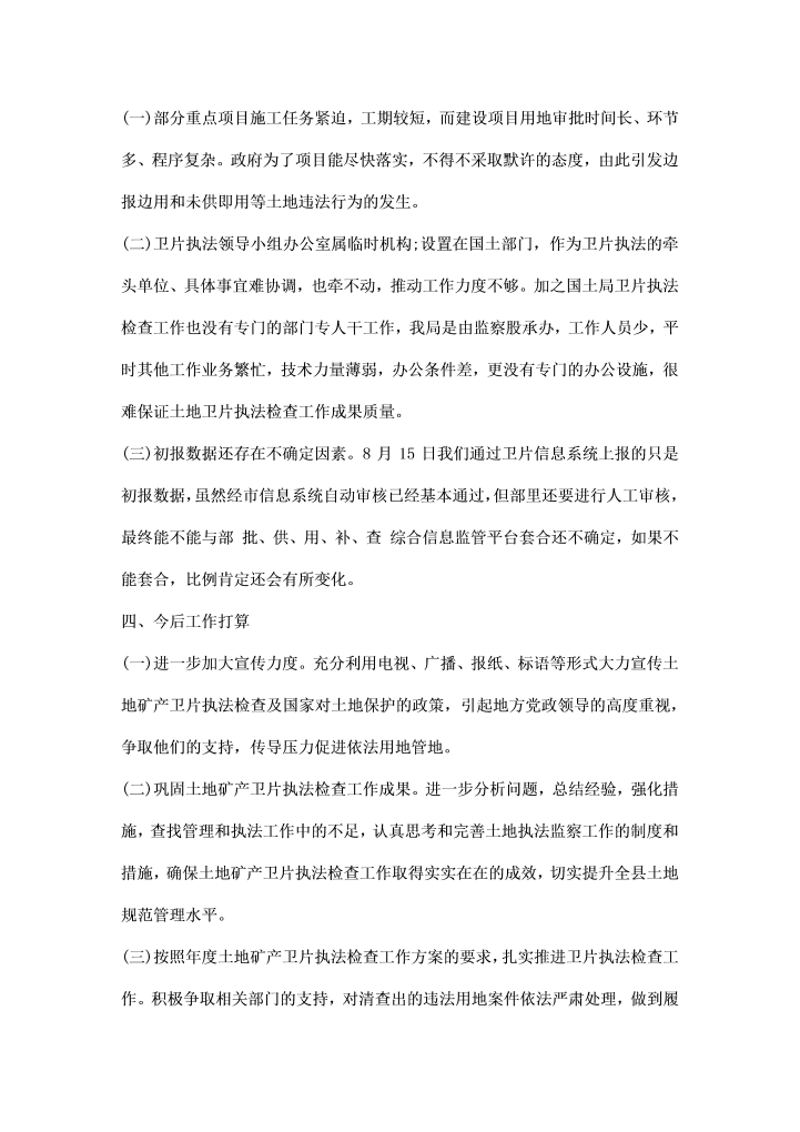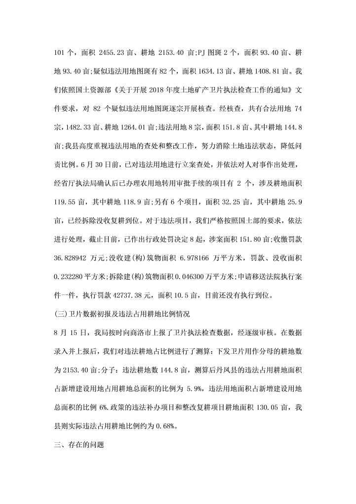 word模板-土地矿场检查工作汇报范文