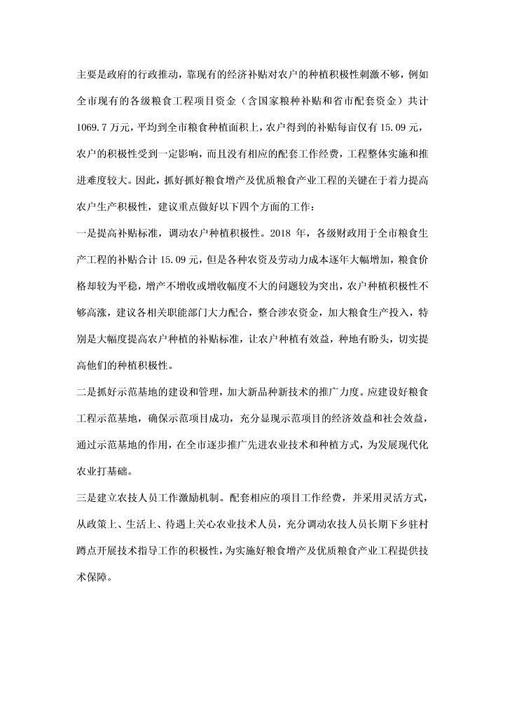 word模板-粮食增产及产业工程视察汇报
