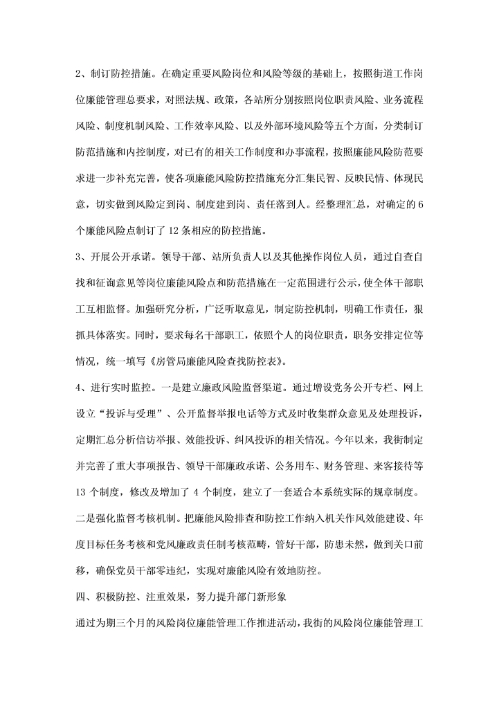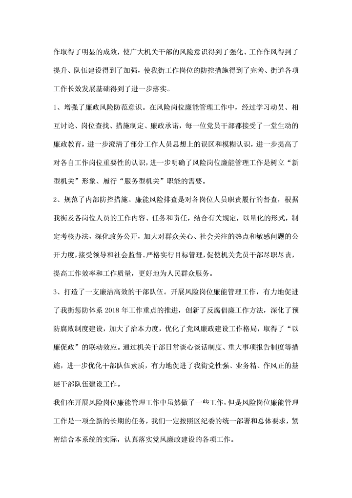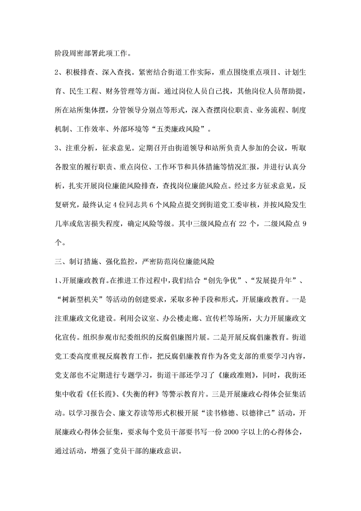 word模板-街道岗位廉能管理工作汇报