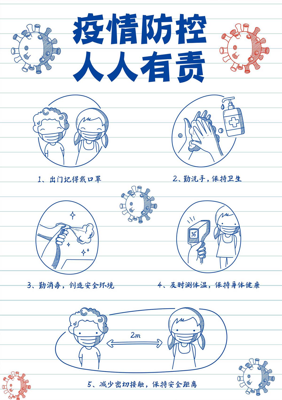 word模板-手绘卡通风校园专用疫情防控海报