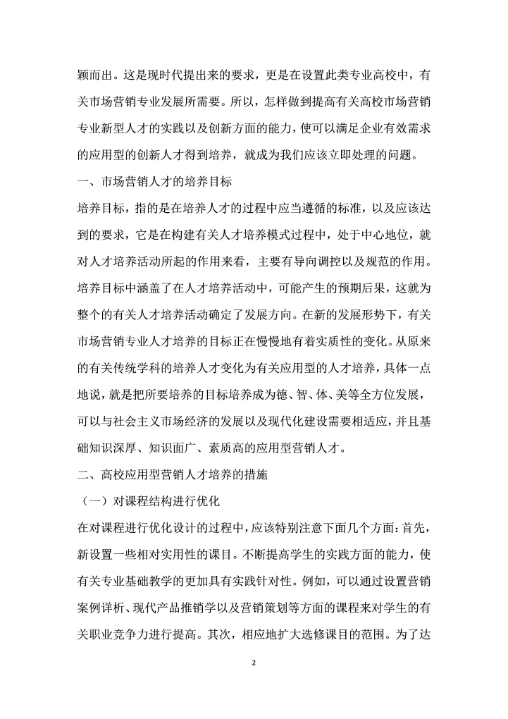 word模板-探究高校市场营销专业应用型创人才的培养