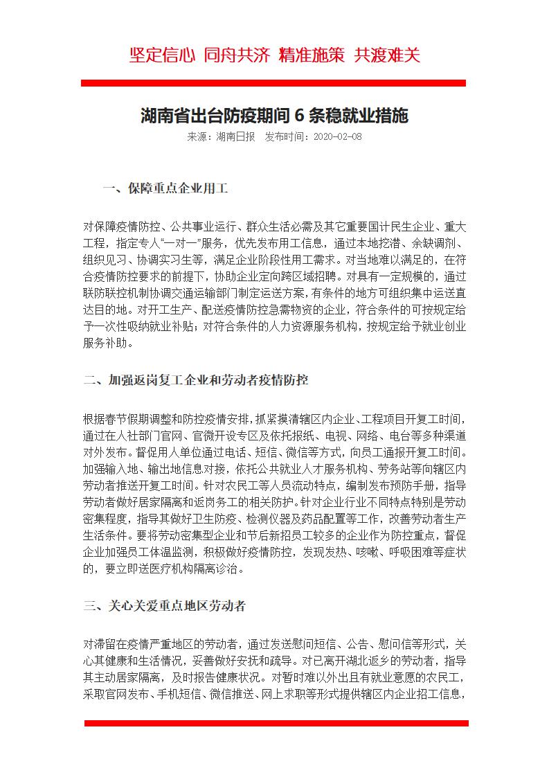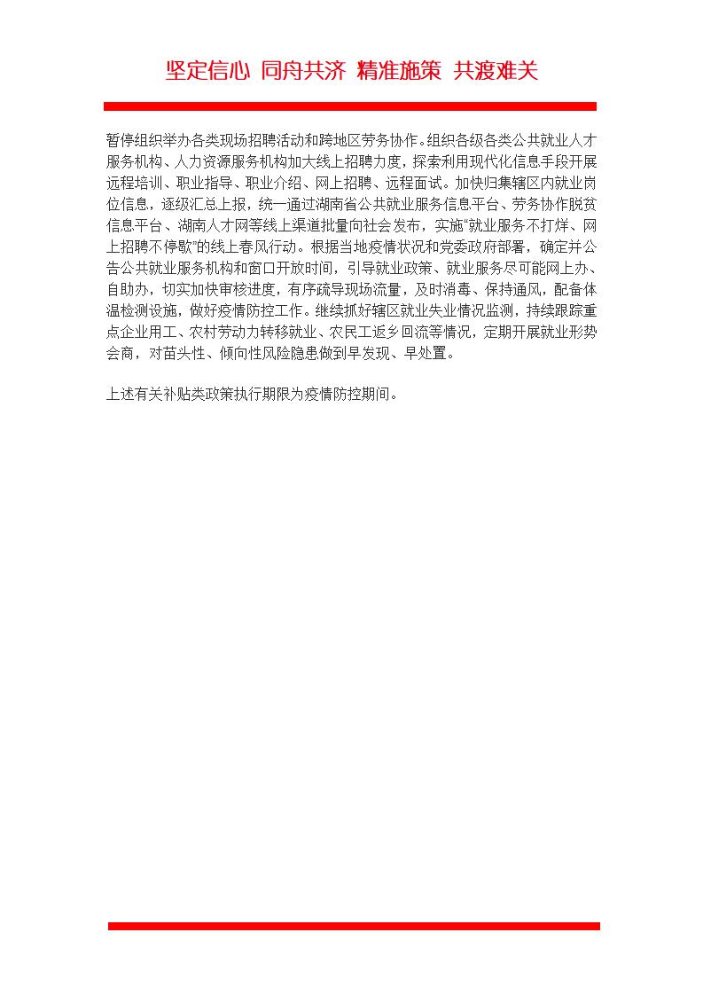 word模板-湖南省颁防疫期间6条稳就业措施