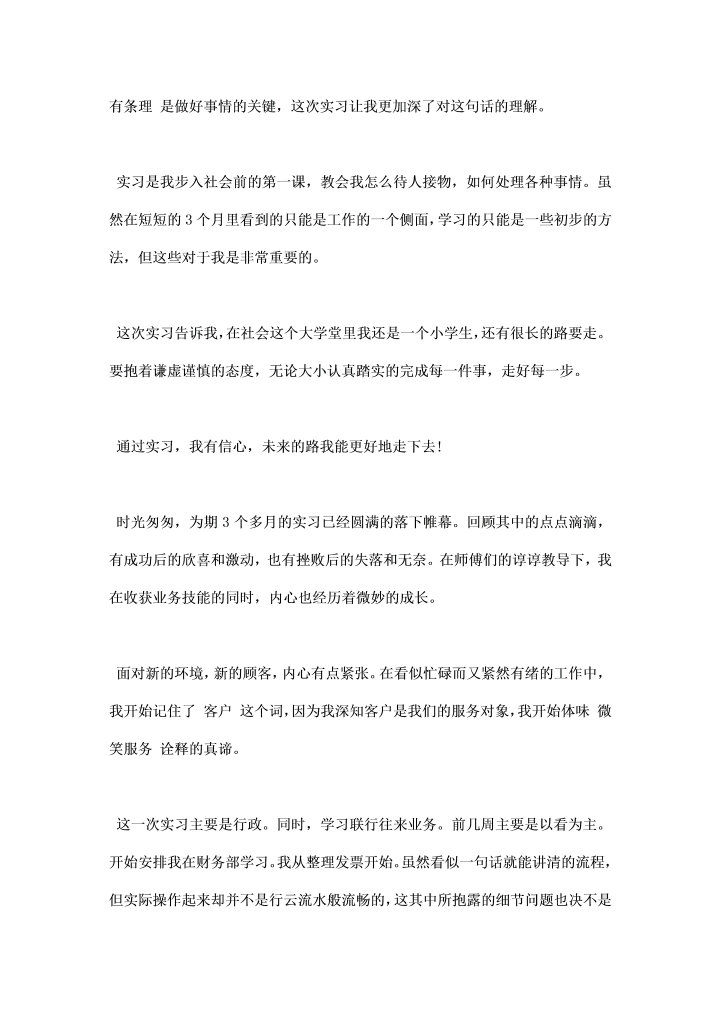 word模板-人事助理个人实习总结