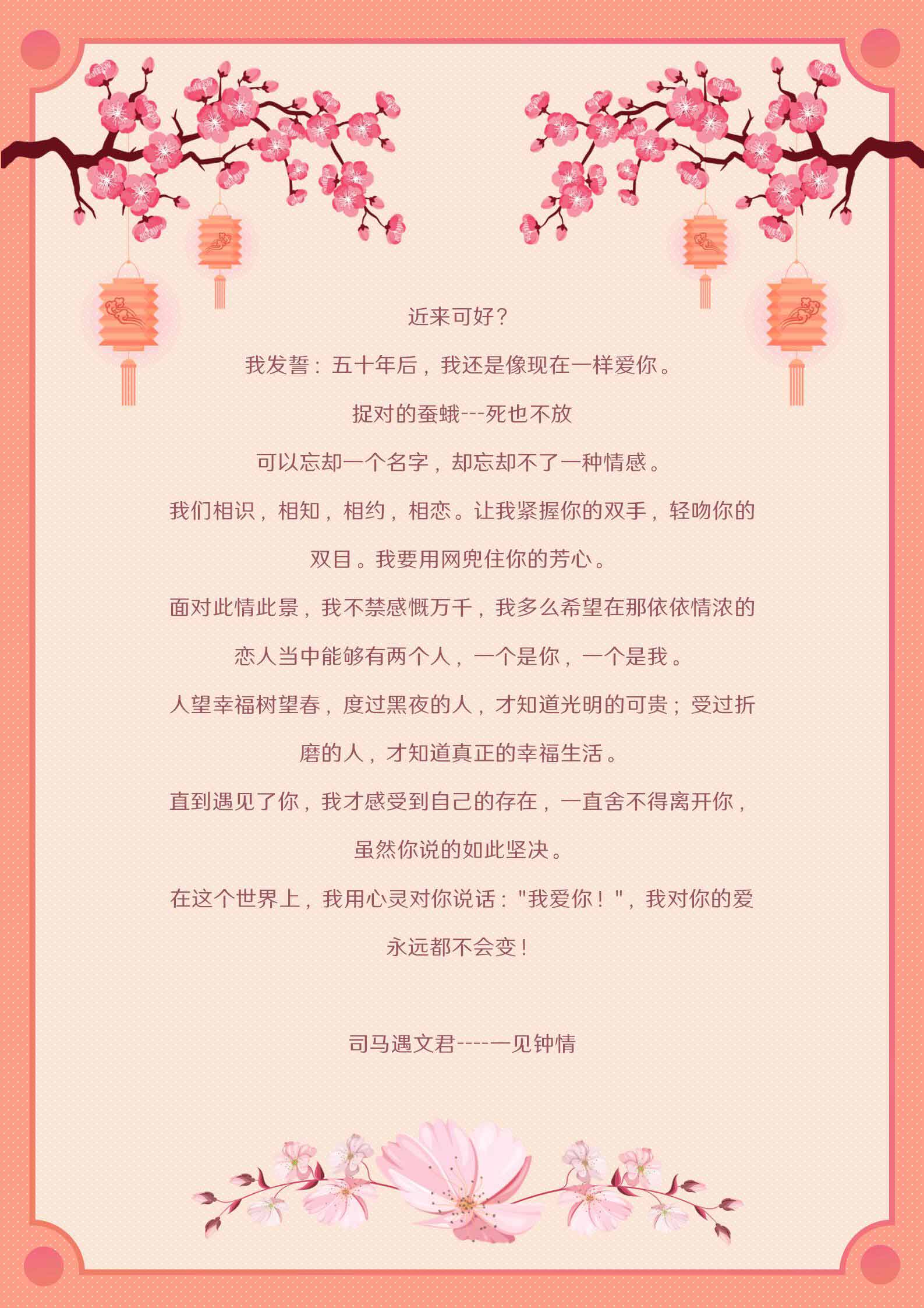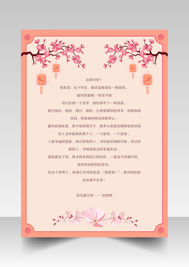 word模板-小清新卡通情人桃花信纸