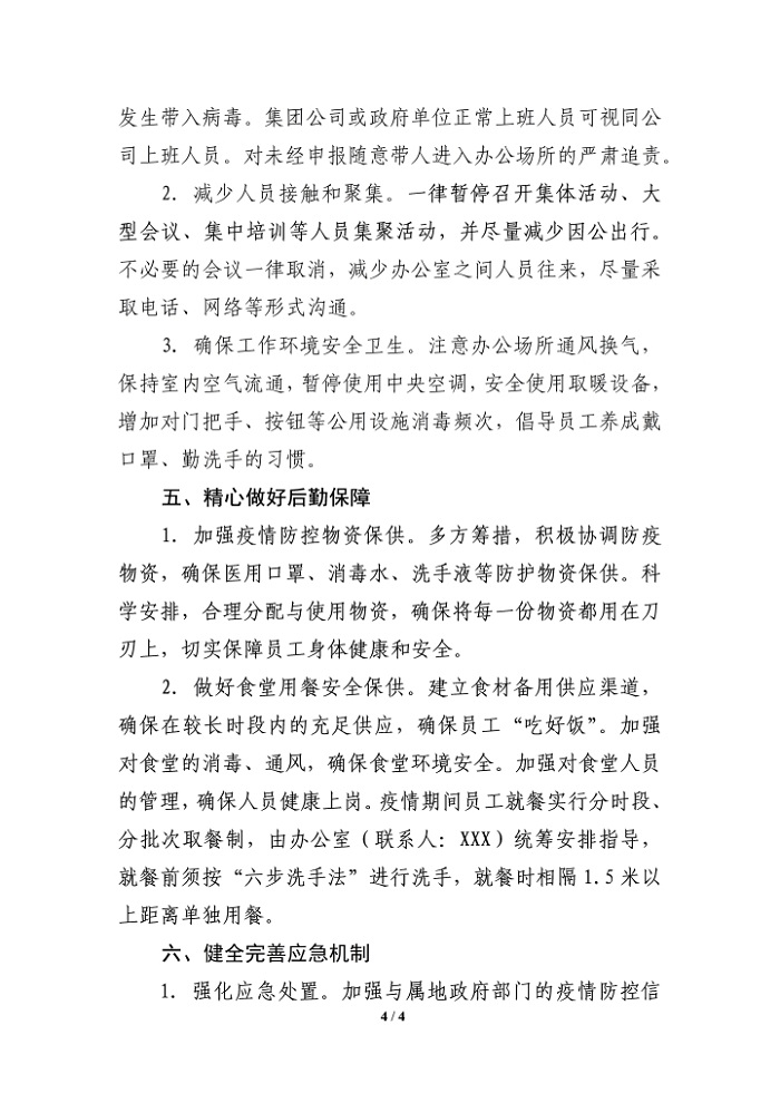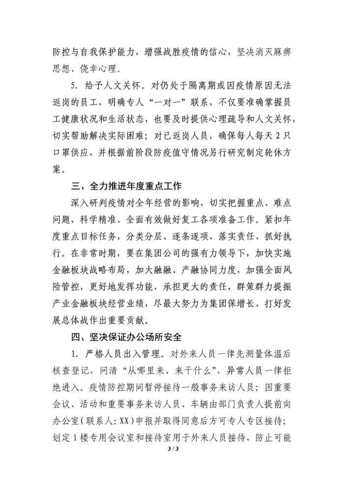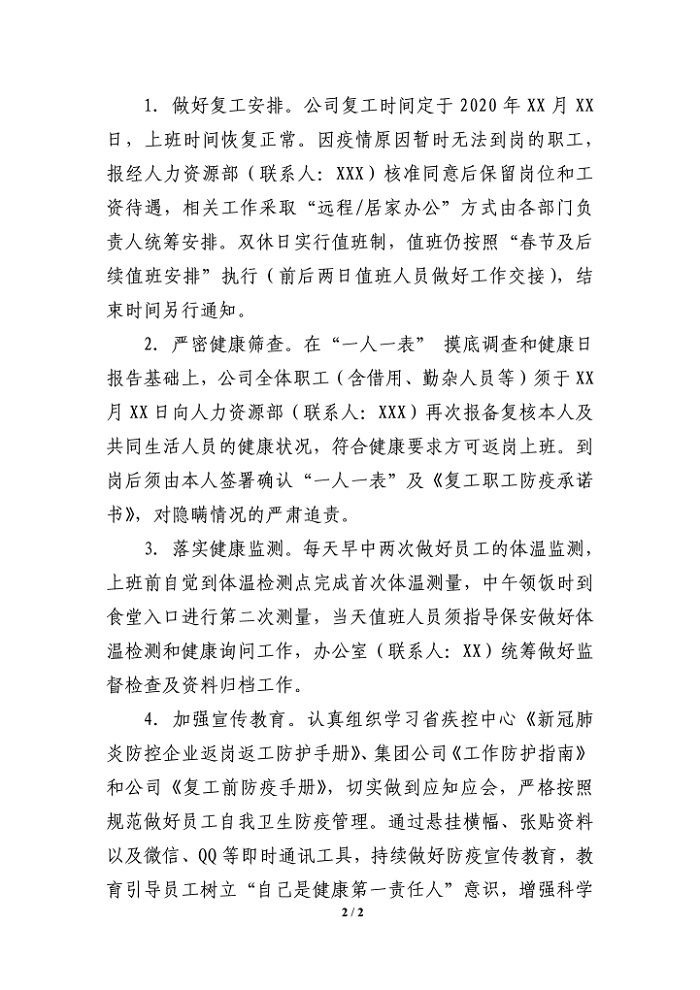 word模板-公司关于切实做好复工与疫情防控