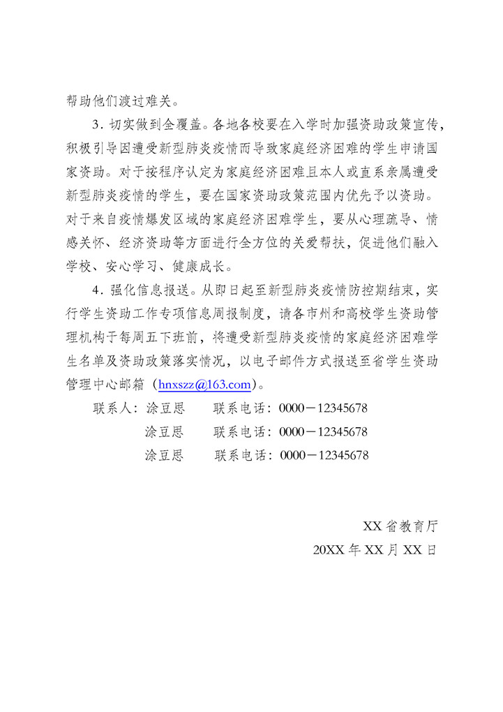 word模板-疫情期间做好学生资助工作的通知