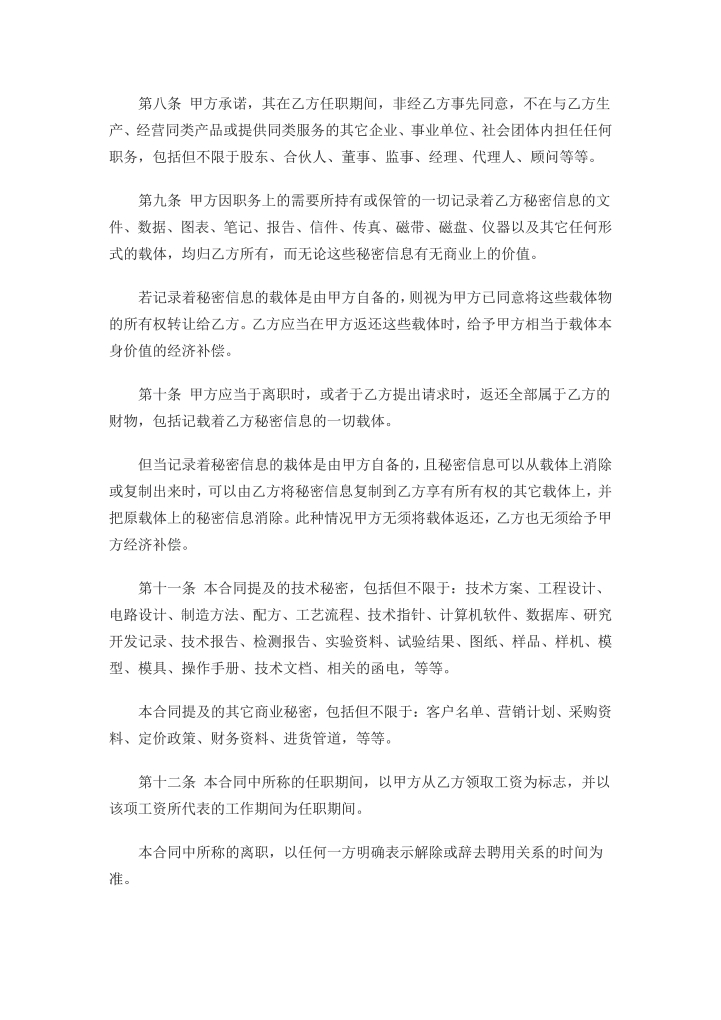 word模板-IT开发人员的保密协议(通用)