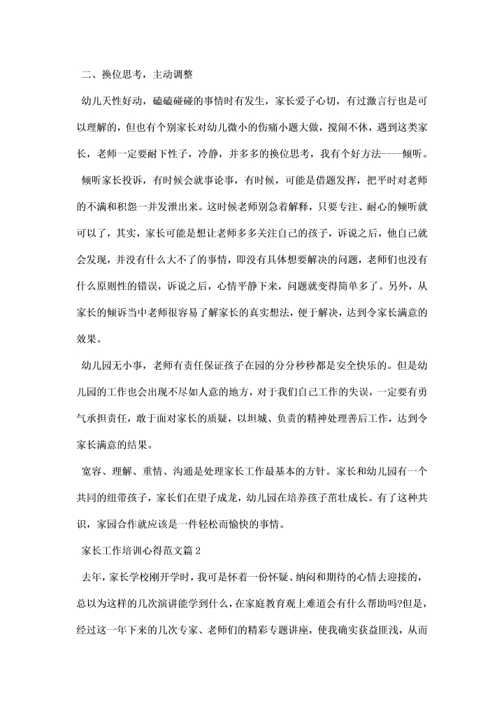 word模板-家长工作培训心得