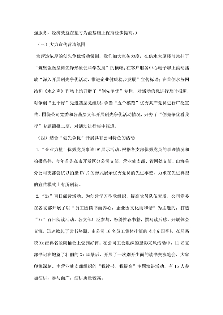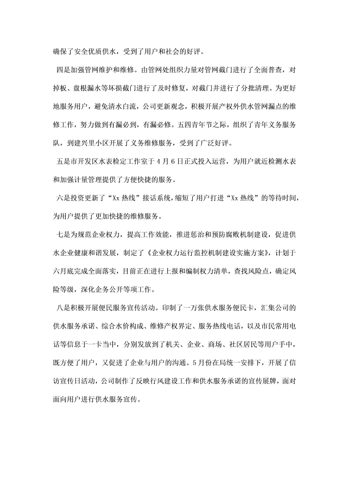 word模板-供水公司创先争优和行风建设工作情况汇报