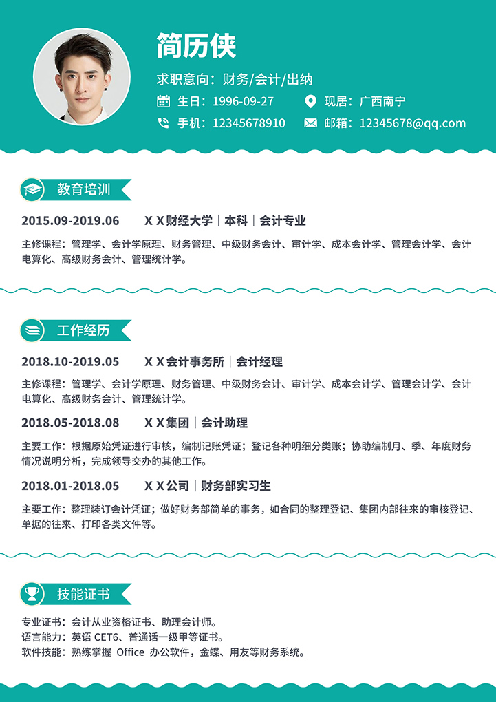 word模板-绿色清新财务会计通用简历