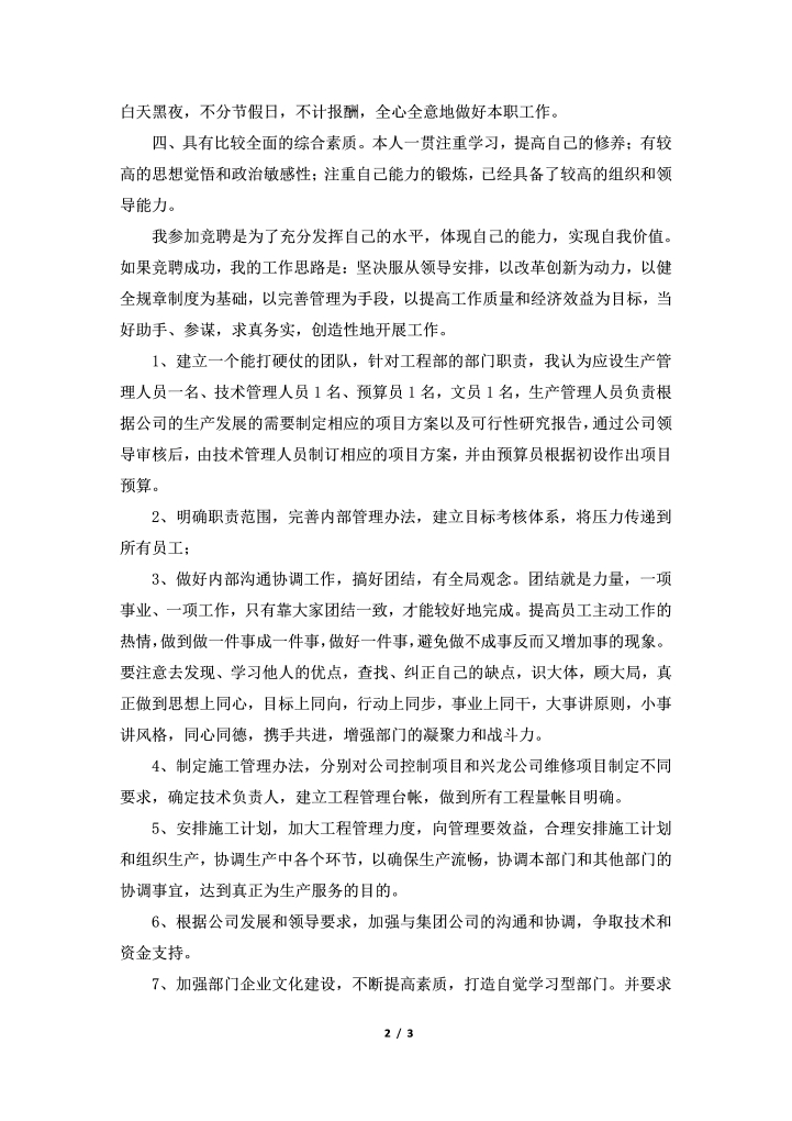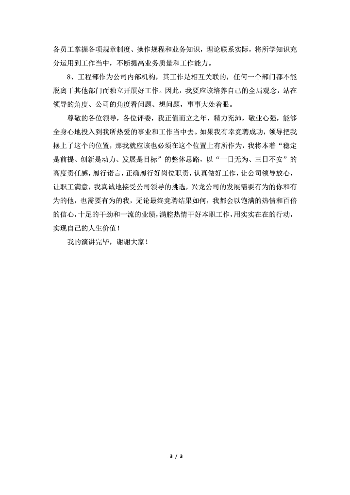 word模板-2018年企业工程部负责人竞聘演讲稿