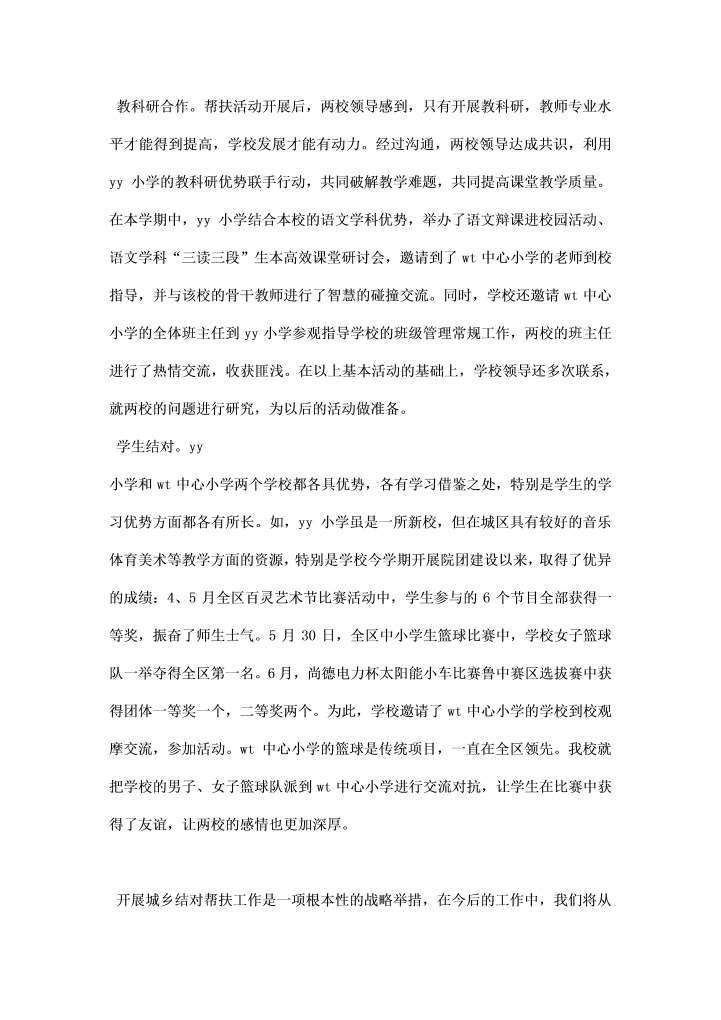 word模板-小学结对帮扶活动总结