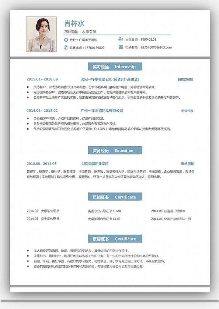 word模板-简约求职销售人员