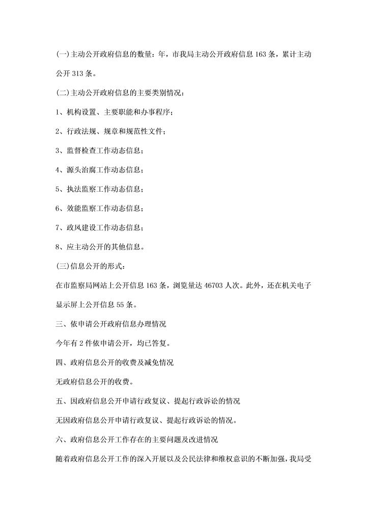 word模板-监察部门信息公开任务汇报