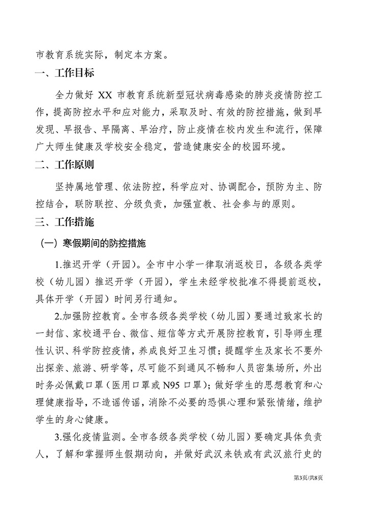 word模板-教育系统新冠肺炎疫情防控方案